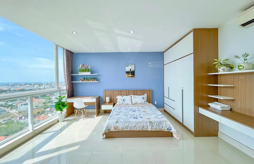 Staying at Can Ho Oasky,3 Phong View Dep Nhin Ra Bien,Nui Va Ho Bau Sen apartment, guests have access to a balcony and a dressing area equipped with air conditioning. For added convenience, a bidet, a roll-in shower, and a separate toilet are available at this apartment. Hairdryers, toiletries, and bath sheets can also be found.